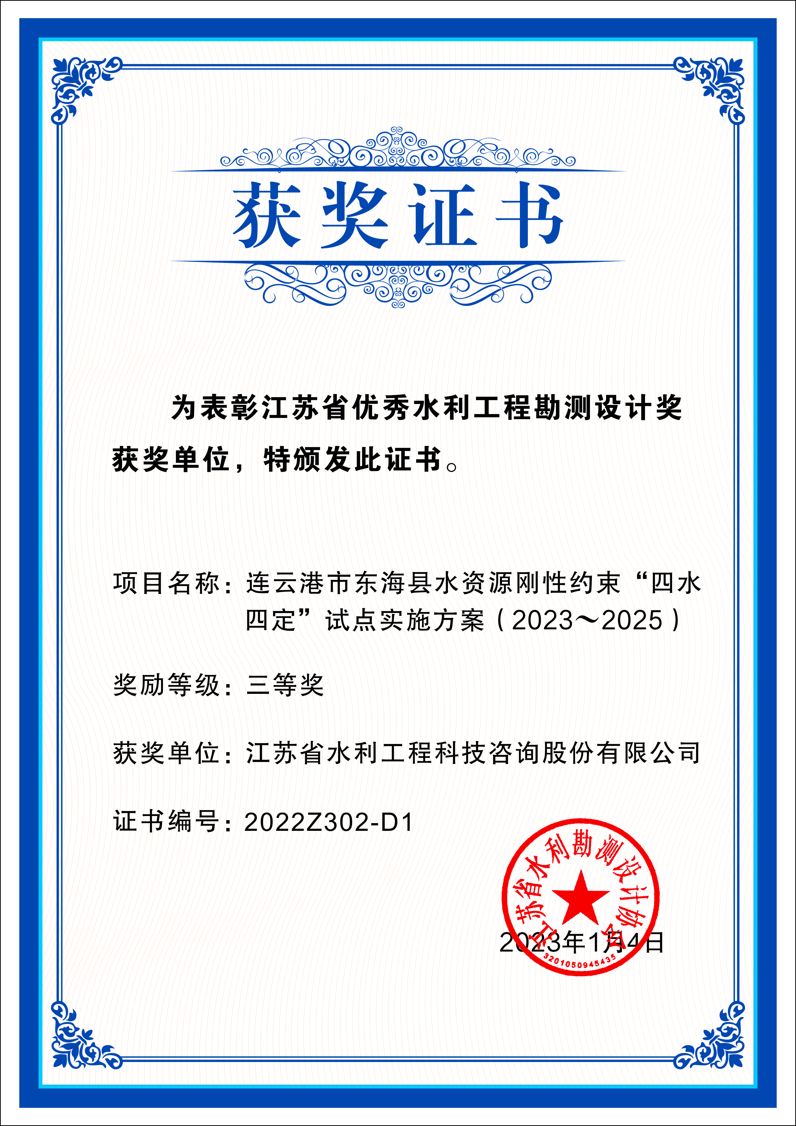 《連云港市東?h水資源剛性約束“四水四定”試定實施方案(2023-2025)》獲評“全省優(yōu)秀水利工程勘測設計獎(規(guī)劃、咨詢類)三等獎”。方案通過探索水資源剛性約束制度建設路徑,以水安全有效保障、水資源高效利用、水生態(tài)明顯改善為目標,推動區(qū)域發(fā)展規(guī)模、結(jié)構(gòu)、布局優(yōu)化升級,實現(xiàn)經(jīng)濟社會發(fā)展與水資源承載能力相適應,全面提升東海宜居宜業(yè)水平,塑造現(xiàn)代人水和諧共生關系,為東海高質(zhì)量發(fā)展提供水資源保障。