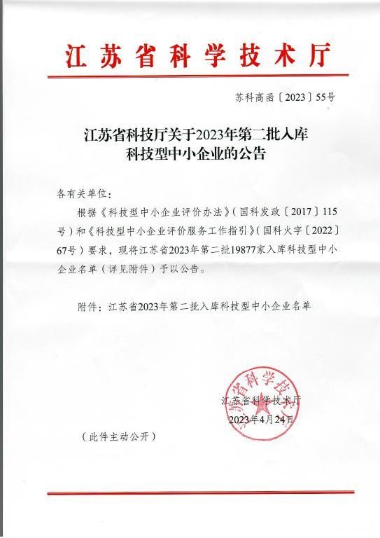 | 公司成功入庫2023年度科技型中小企業(yè)作者:admin 來源: 日期:2023-4-27 15:04:24 人氣:
