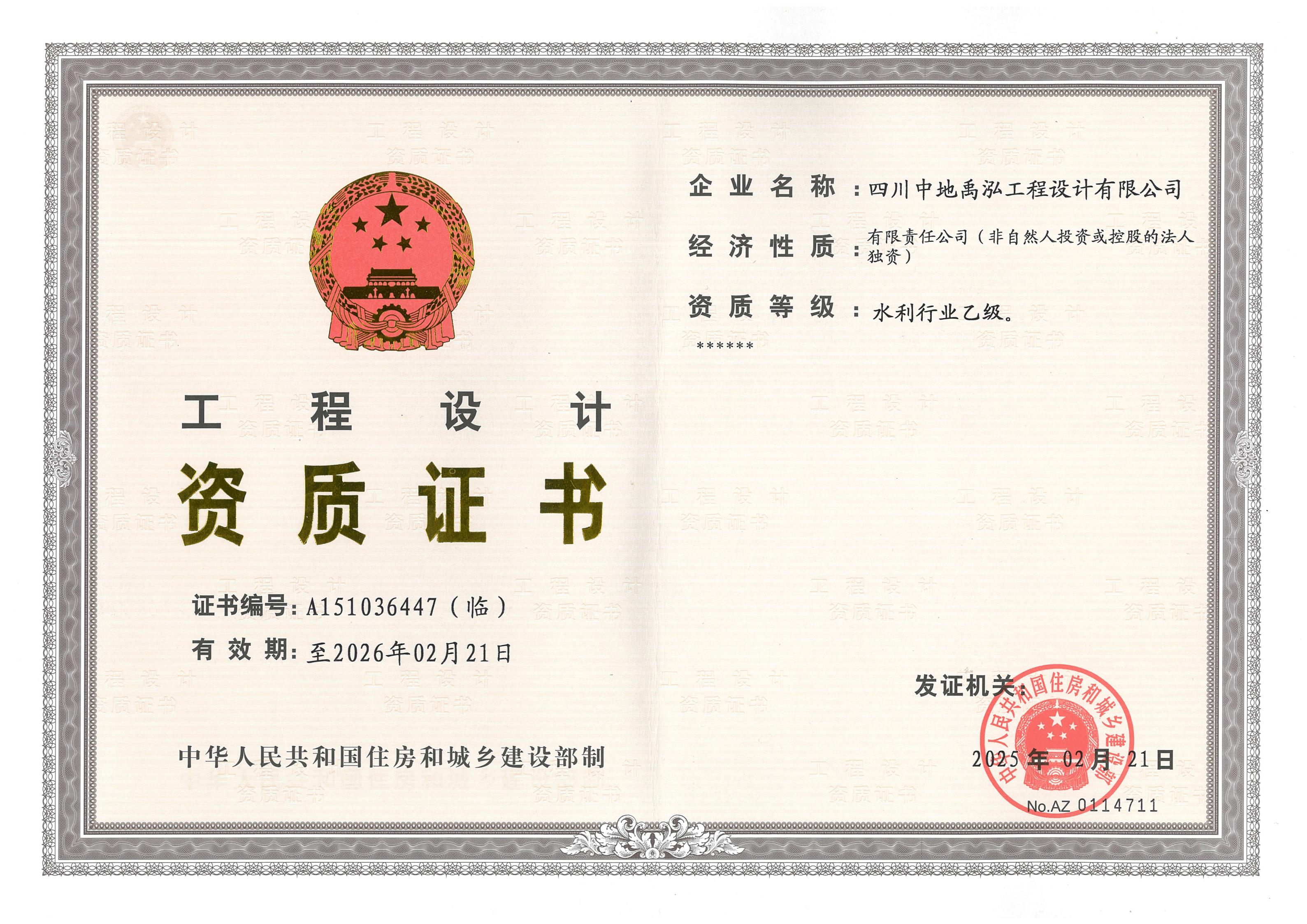工程設(shè)計資質(zhì)證書
