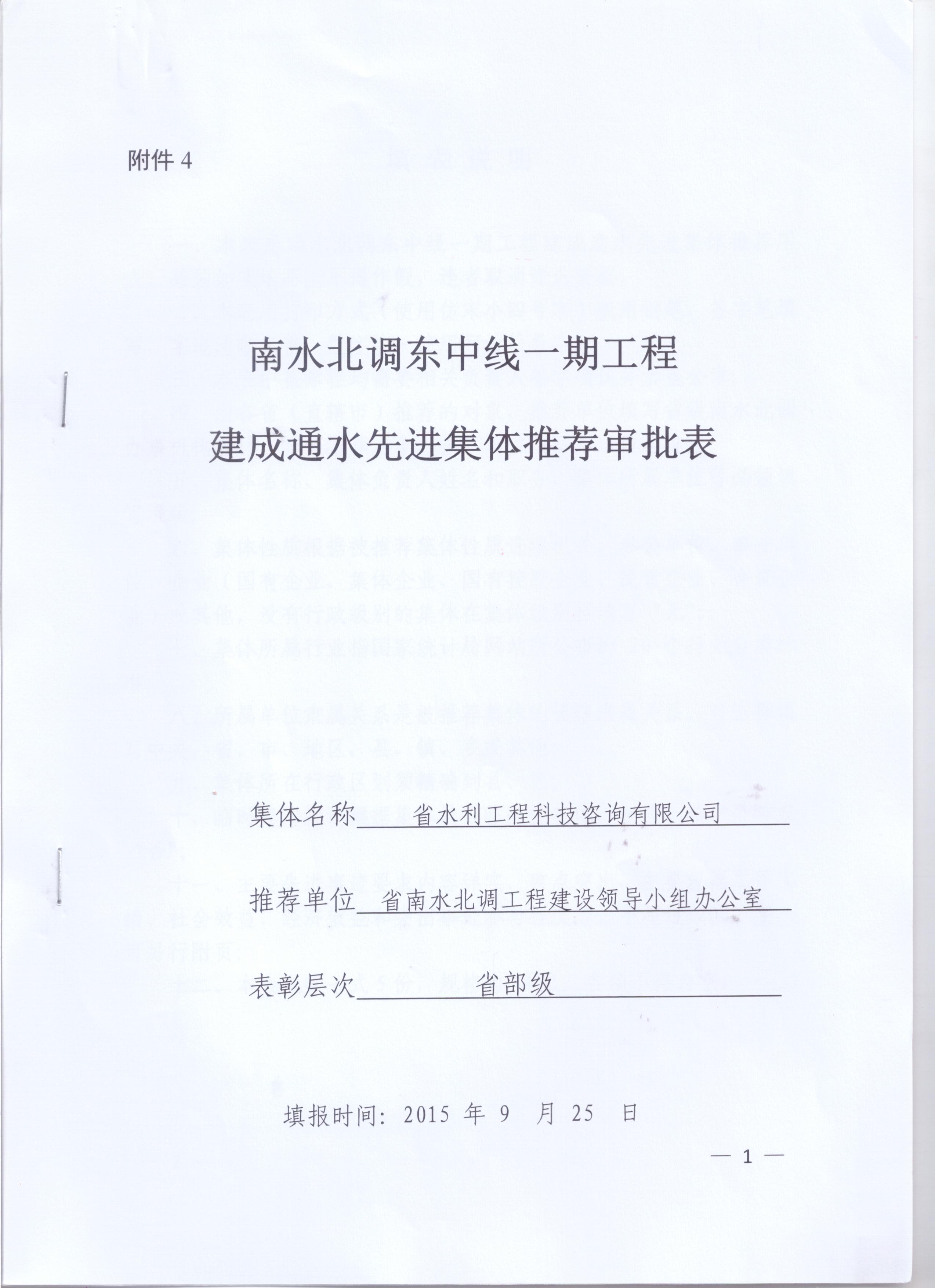 > 南水北調東中線一期工程先進集體