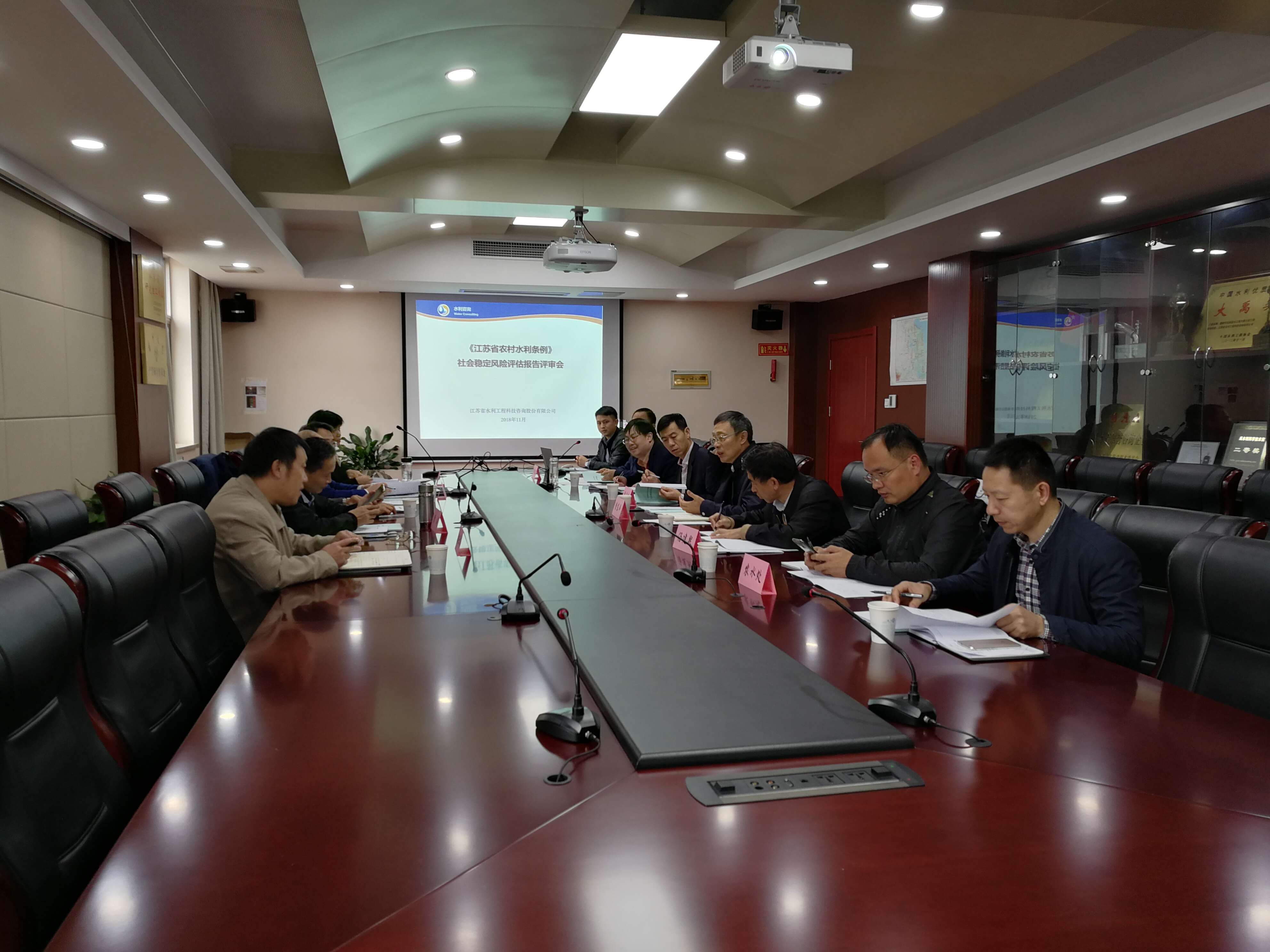 2018年11月8日,江蘇省水利廳在我公司組織召開(kāi)了《江蘇省農(nóng)村水利條例(初稿)》社會(huì)穩(wěn)定風(fēng)險(xiǎn)評(píng)估專(zhuān)家評(píng)審會(huì)。參加會(huì)議的有江蘇省水利廳政法處、農(nóng)水處、江蘇省水利工程科技咨詢(xún)股份有限公司和特邀專(zhuān)家。
