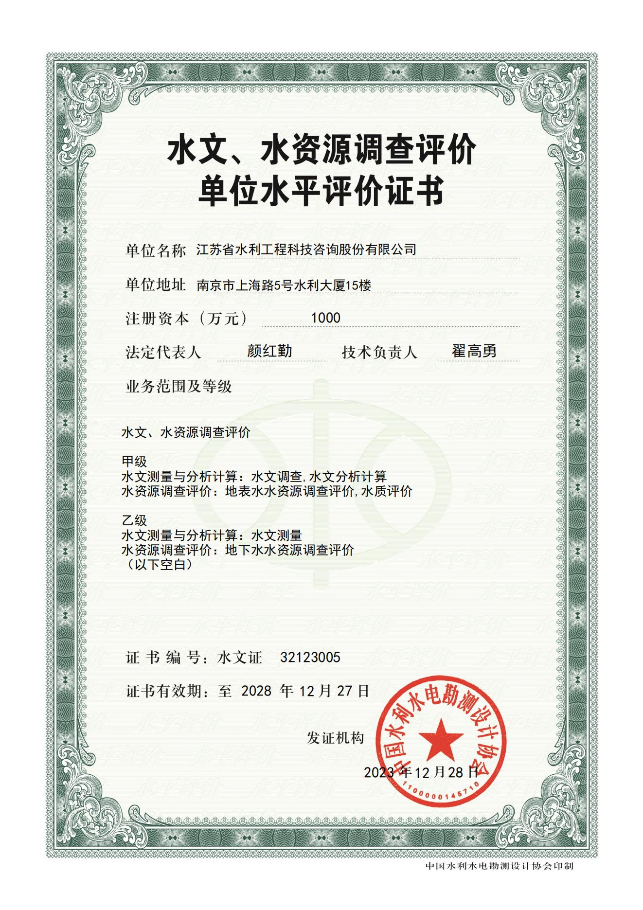 水文水資源調(diào)查評價電子證書