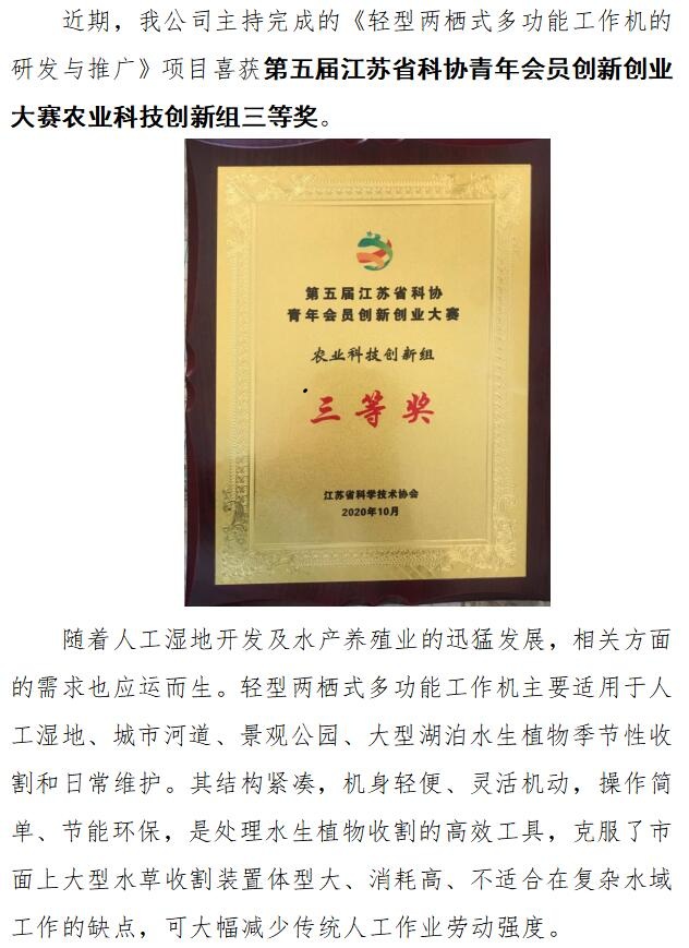 公司喜獲第五屆江蘇省科協(xié)青年會(huì)員創(chuàng)新創(chuàng)業(yè)大賽農(nóng)業(yè)科技創(chuàng)新組三等獎(jiǎng)作者:admin 來源: 日期:2020-11-3 15:06:20 人氣: